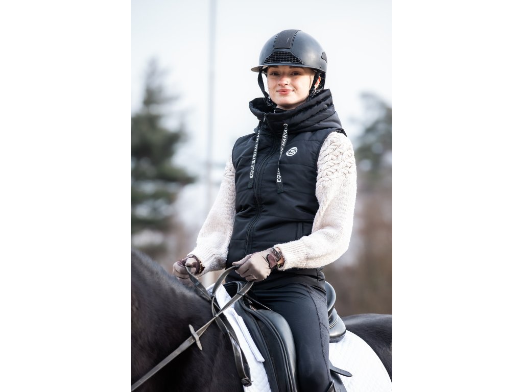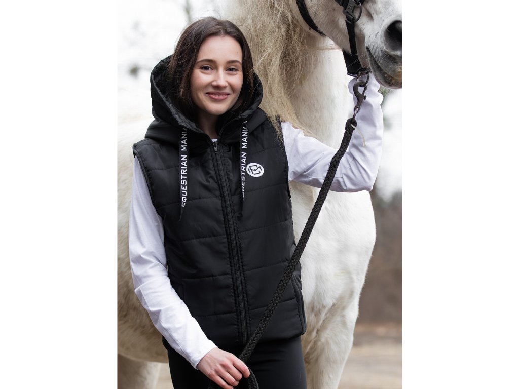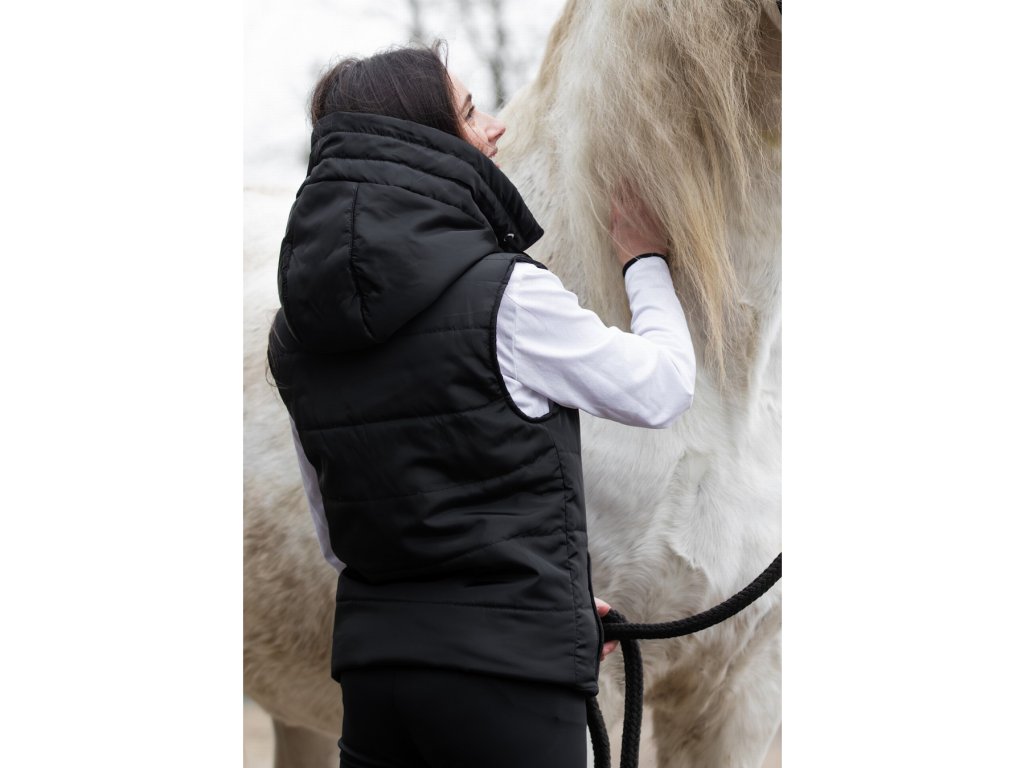 Sportovní prošívaná vesta s vysokým límcem a kapucí v moderním střihu. Vesta Legatto je ušitá z kvalitního, pevného materiálu luxusního vzhledu. Do kapes na zip se vejde mobil a ostatní nezbytnosti. Decentní loga na hrudi a v dolní části zad tvoří společně s potiskem tkaniček od kapuce nápaditý vzhled.